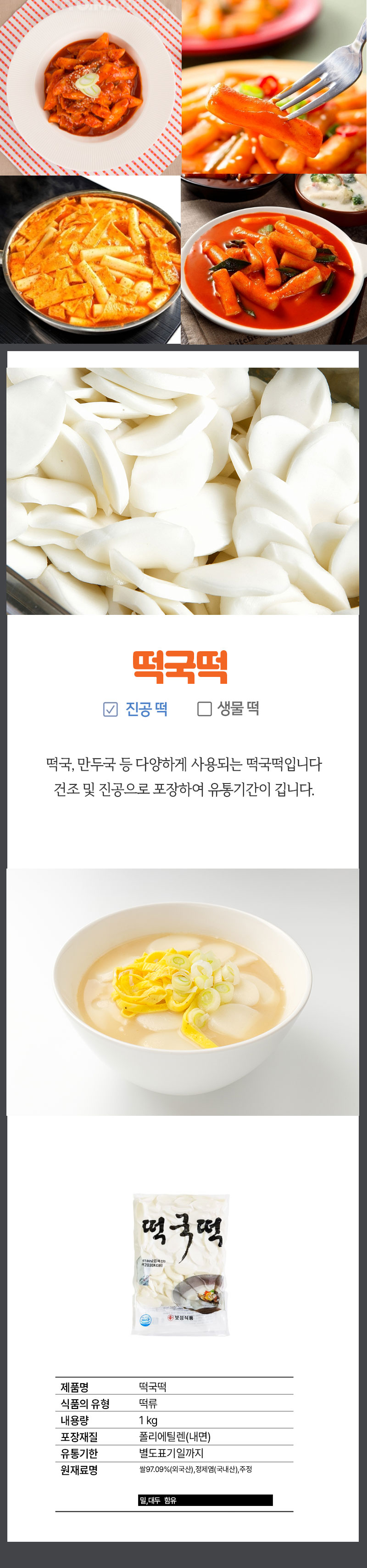 간단설명 : 떡국, 만두국 등 다양하게 사용되는 떡국떡입니다