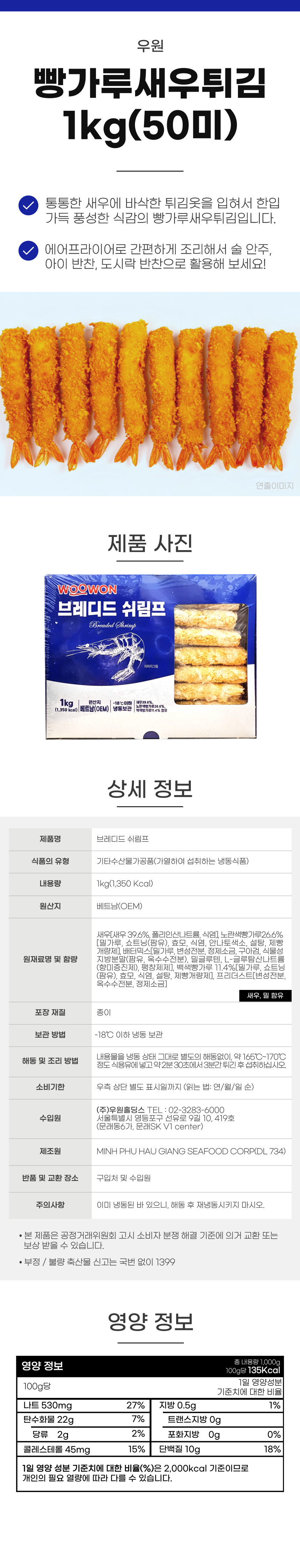 우원 왕새우튀김 1kg (20g*50입) 냉동 빵가루 새우튀김 이미지