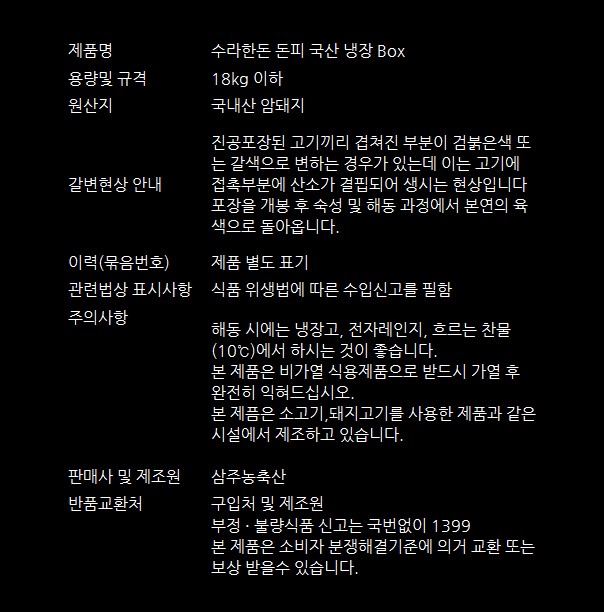 수라한돈 돈피 18kg 내외 냉장 이미지
