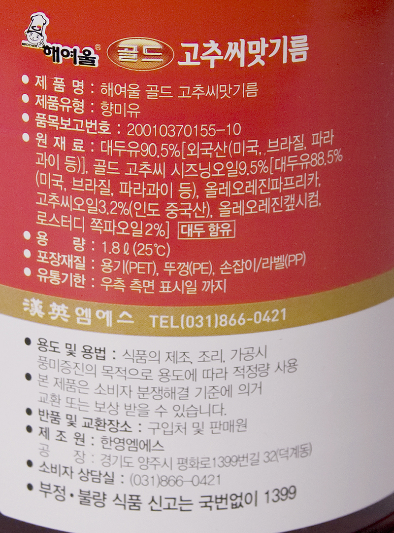 해여울 고추기름 고추씨맛기름 골드 1.8L 이미지