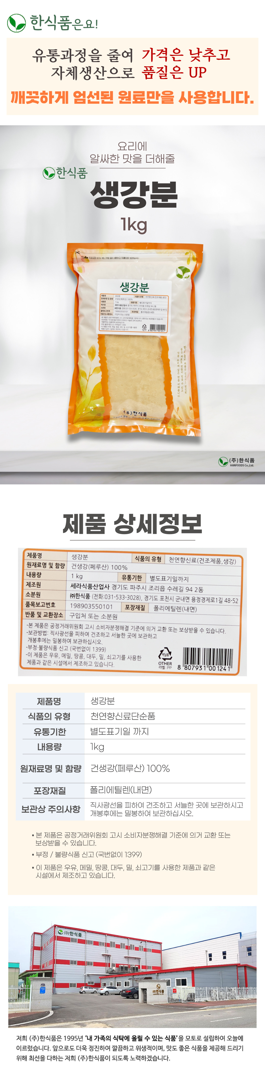 한식품 생강분말 1kg [100%] 진저파우더 이미지