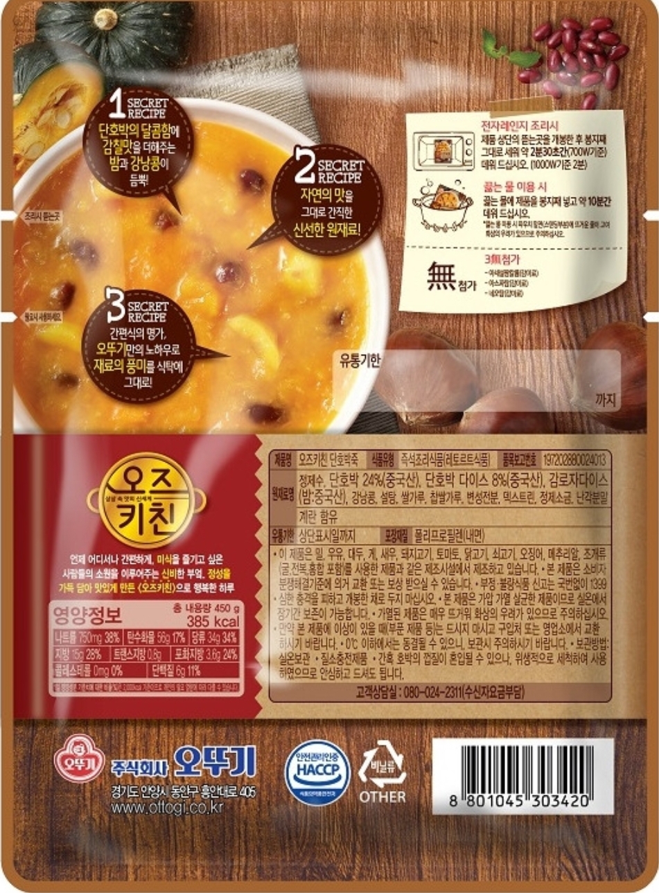 오뚜기 오즈키친 단호박죽 450g