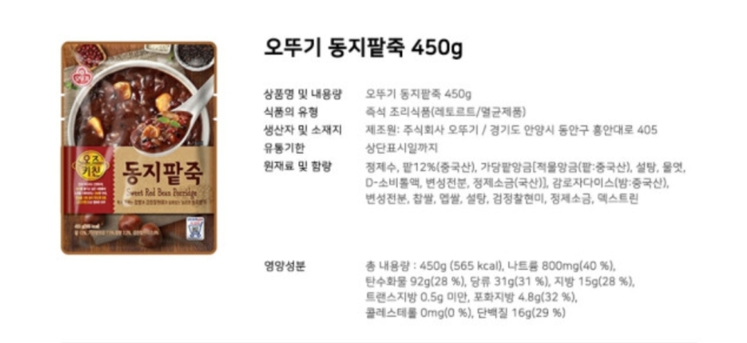 오뚜기 오즈키친 동지팥죽 450g 이미지