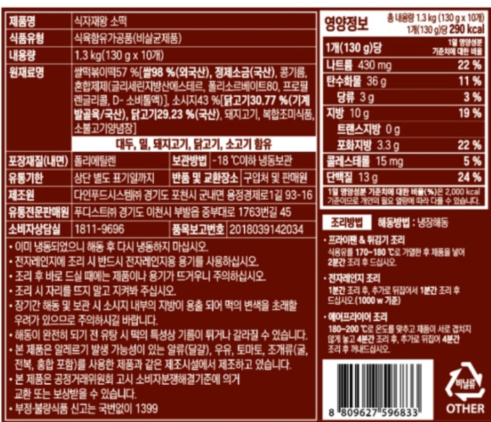 식자재왕 소떡소떡 1.3kg 냉동 이미지