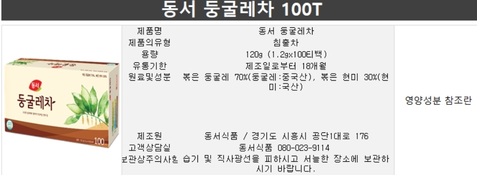 동서 둥굴레차 100T 이미지