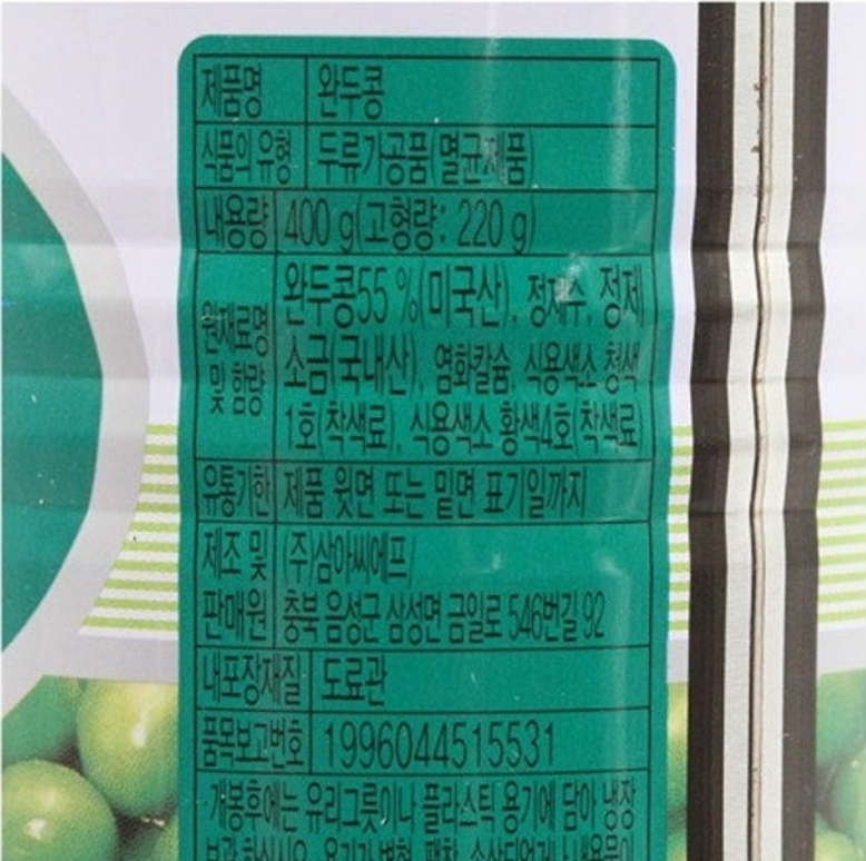 원재료명 및 함량