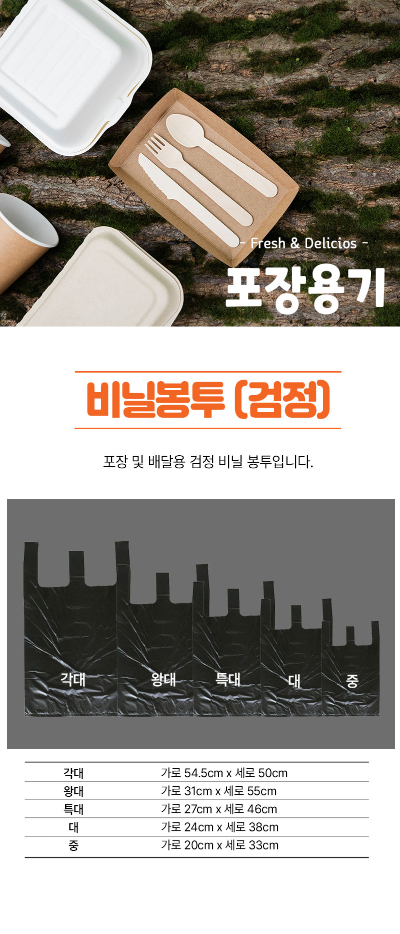 간단설명 : 많이 사용되는 포장 및 배달용 검정색 비닐 봉투입니다.