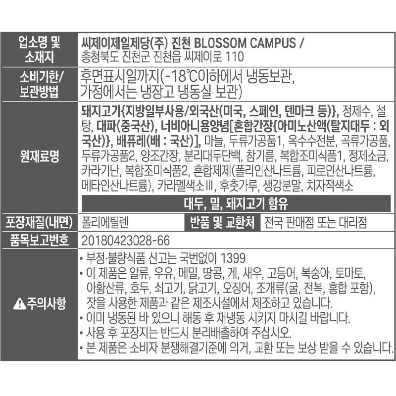 본 제품은 제품입고일별 유통기한 또는 품질유지기한이 상이하므로, 필요시 고객센터로 문의하여 주십시오. 제조일로부터 270일 까지