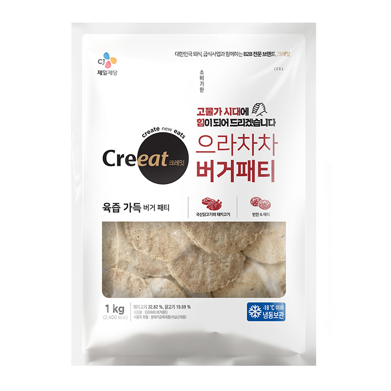 ★제당 초특가★크레잇 으라차차버거패티(50g*20입 1Kg/EA) 떡갈비 함박 너비아니 패티