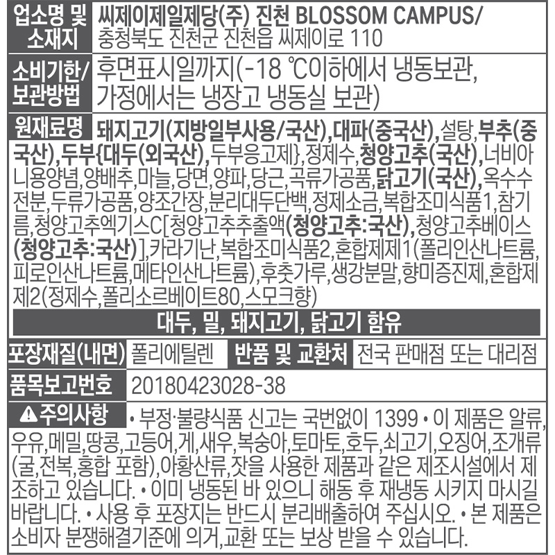본 제품은 제품입고일별 유통기한 또는 품질유지기한이 상이하므로, 필요시 고객센터로 문의하여 주십시오. 제조일로부터 270일 까지