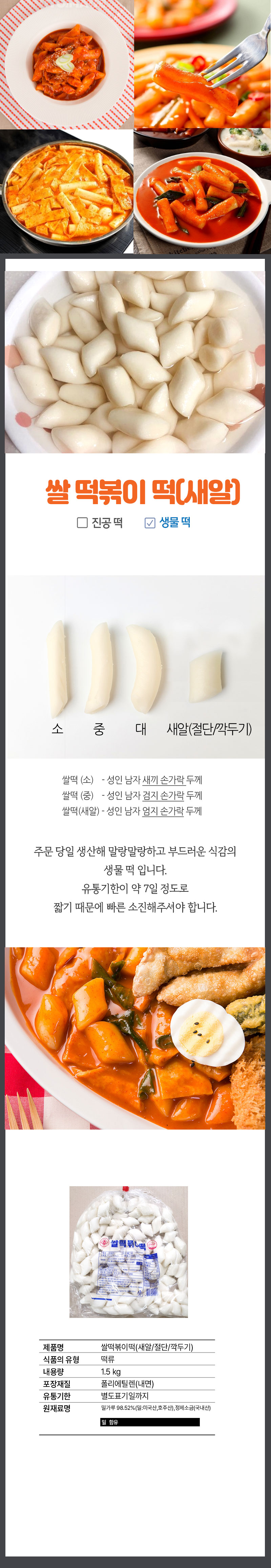 간단설명 : 떡볶이 쌀떡으로 주문과 동시 당일 만들어낸 말랑말랑한 떡입니다.