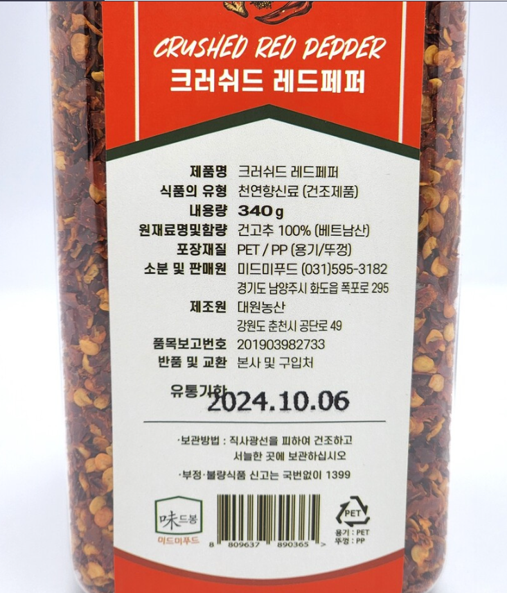 미드미 크러쉬드 레드페퍼 340g 향신료 이미지