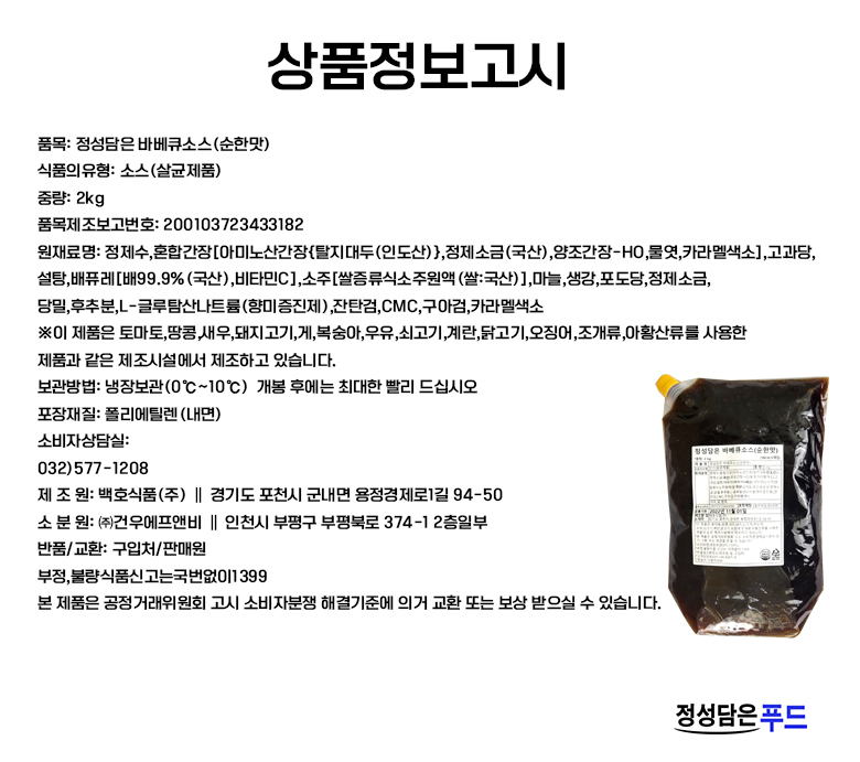![[정성담은푸드] 바베큐족발 바베큐보쌈 바베큐소스 2kg (순한맛) 이미지](https://content.foodspring.co.kr/vendor/1880/images/36_6982143172_r.jpg?f=webp&s=876x876&t=inside)