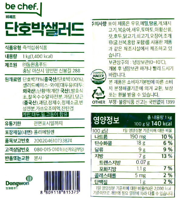 동원 비셰프 단호박 샐러드 1KG