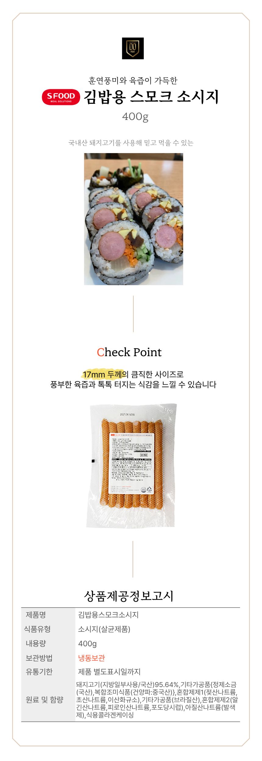 ![[무료배송] 에쓰푸드 김밥용 스모크소시지 400g 냉동 이미지](https://content.foodspring.co.kr/vendor/1790/images/109_6803904614_r.jpg?f=webp&s=876x876&t=inside)