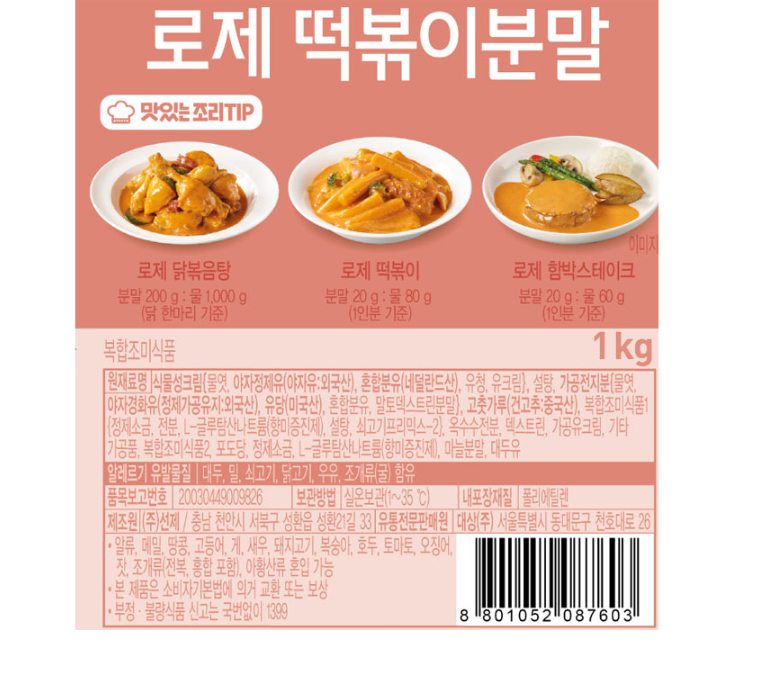 쉐프원 로제 떡볶이 분말 1kg 크림 로제 커리 소스 레시피 이미지