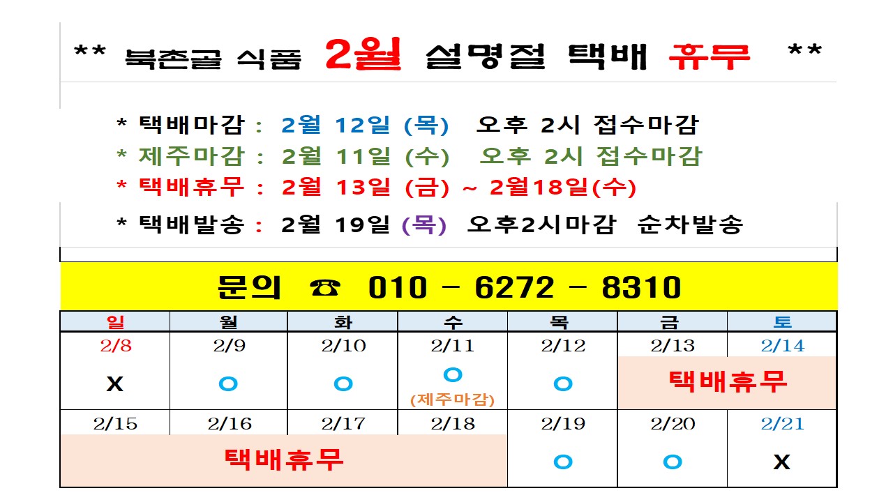 - 택배 배송 : 당일 2시까지 주문건 당일택배 발송(주말.공휴일제외)