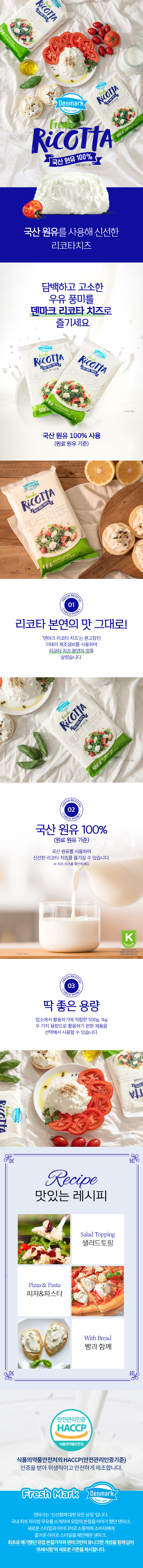 동원 덴마크 리코타 치즈 1kg 냉장 리코타치즈샐러드 국산원유 100% 이미지