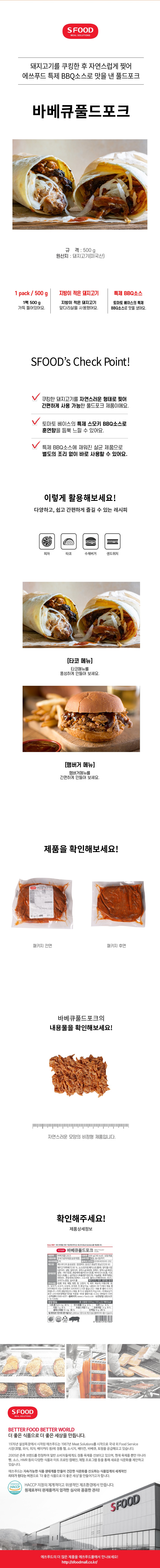 에스푸드 에쓰푸드 바베큐풀드포크 500g 냉동 훈연돼지고기 찢은고기 비비큐맛