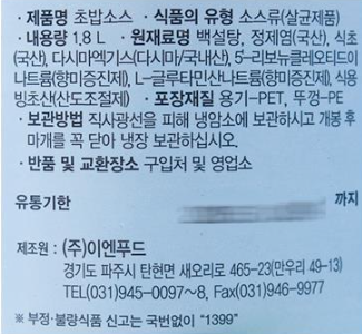 이엔푸드 초밥소스 1.8L 초대리 이미지