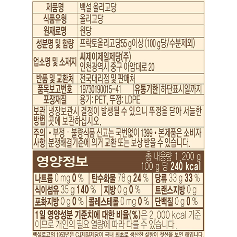 백설 프락토올리고당(1.2Kg/EA) 이미지
