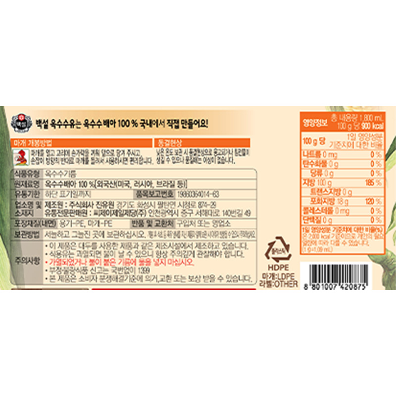 백설 옥배유(1.8L 1.651Kg/EA) 이미지