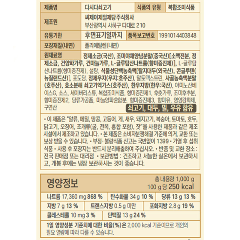 백설 쇠고기 다시다(1Kg/EA) 소고기다시다 이미지