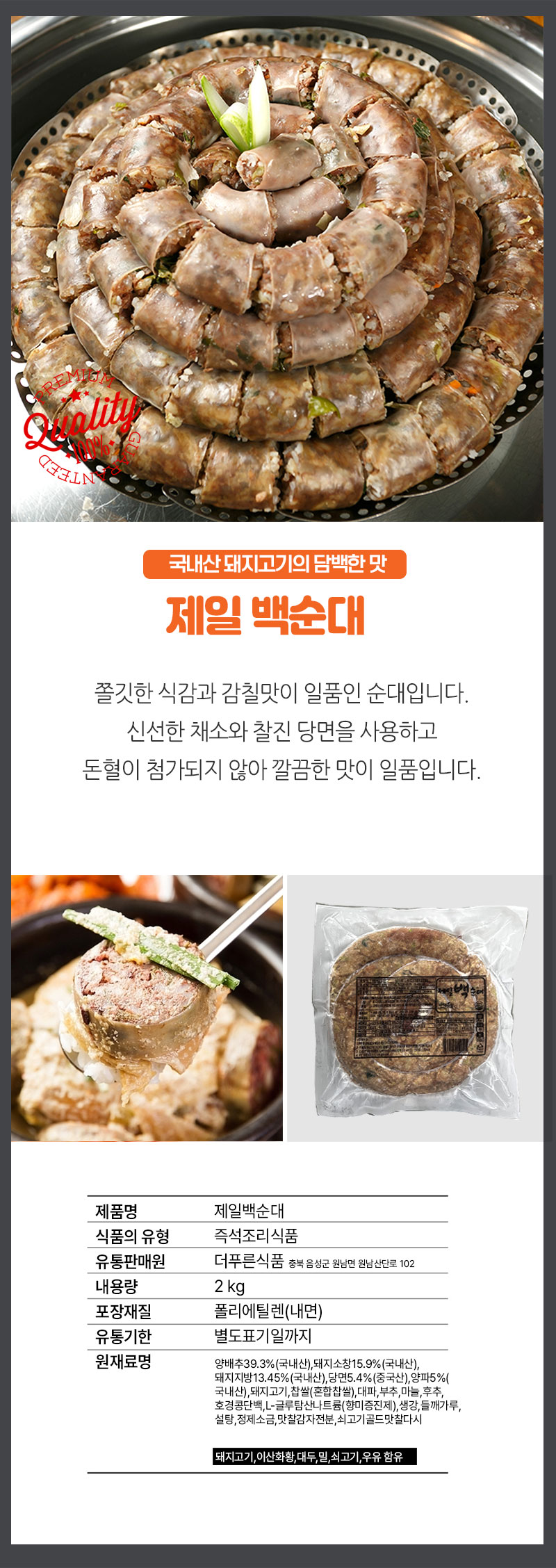 속이 꽉 차 있고 전통적인 순대맛을 높여주며 속이 풀어지지 않습니다.