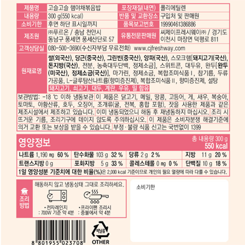 이츠웰 고슬고슬햄야채볶음밥(300g/EA) 볶음밥