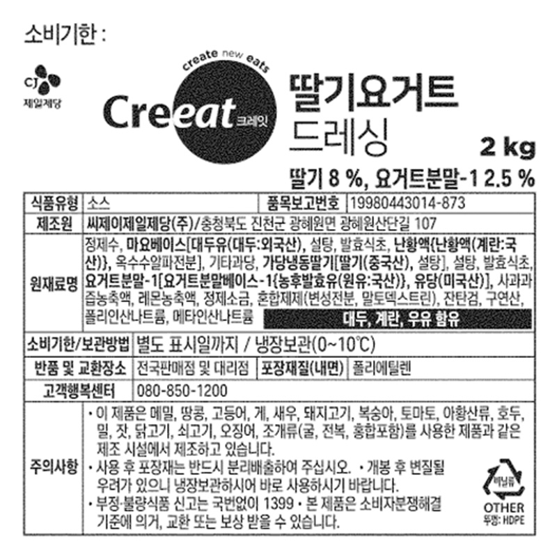 크레잇 딸기요거트드레싱(2Kg/EA) 소스