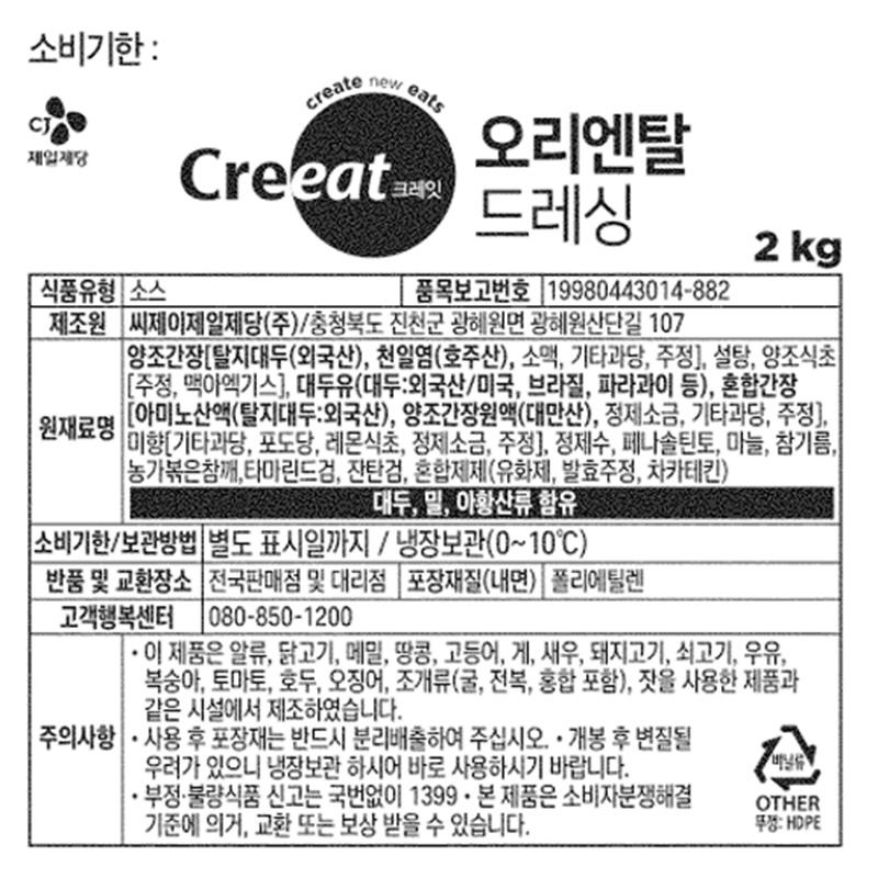 ★제당 초특가★크레잇 오리엔탈드레싱(2Kg/EA) 소스 이미지