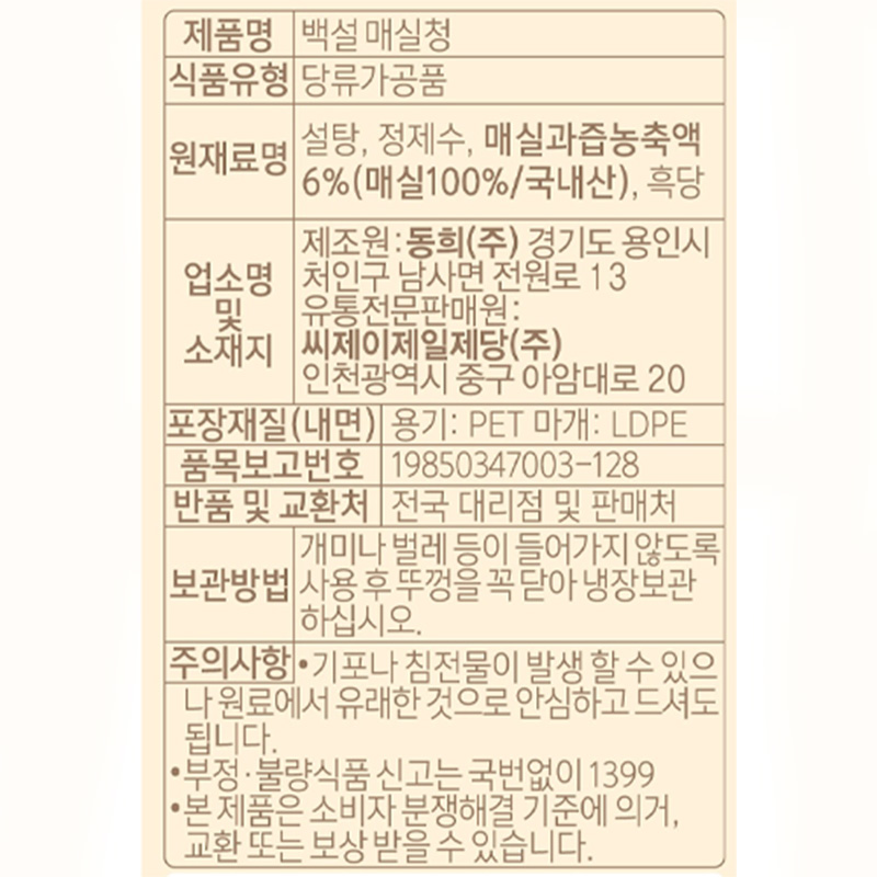 백설 매실청(1.025Kg/EA)