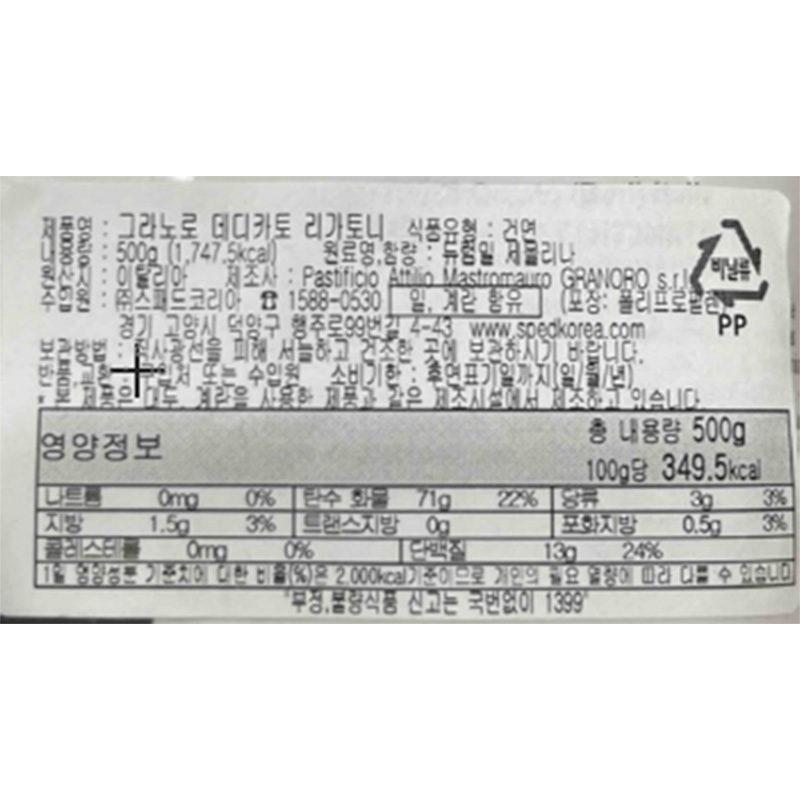 그라노로데디카토 리가토니(브론즈 500g/EA)