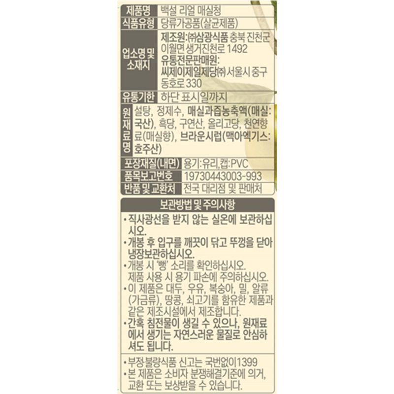 백설 리얼매실청(310ML 410g/EA) 이미지