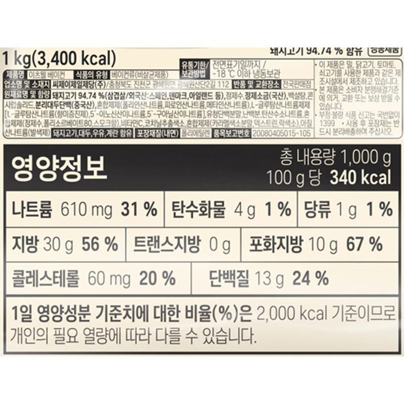 이츠웰 맛있는 베이컨(1Kg/EA)_냉동