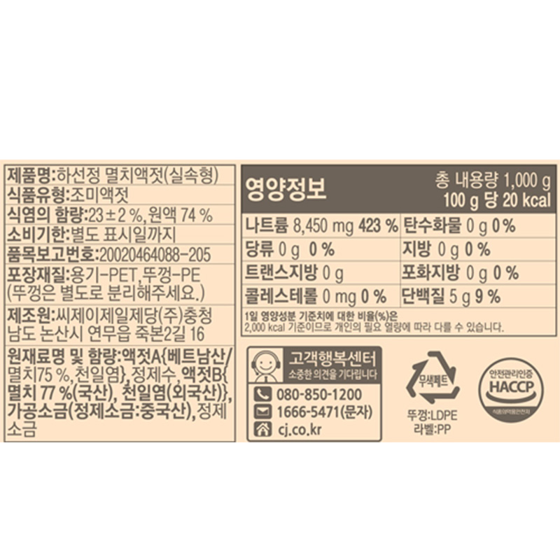하선정 멸치액젓(실속형 1Kg/EA)