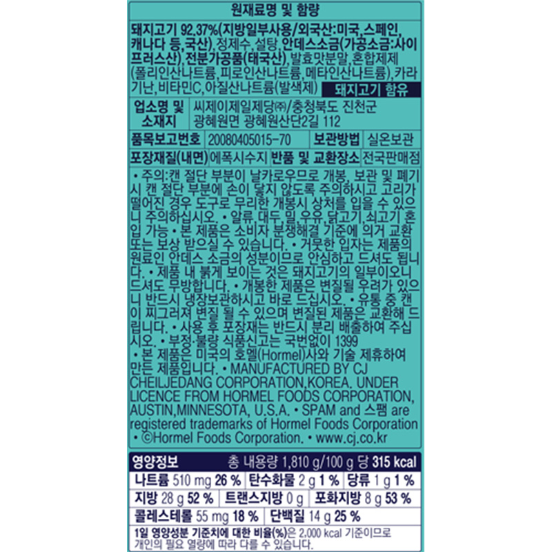 스팸 햄캔(25%라이트 1.81Kg/EA)