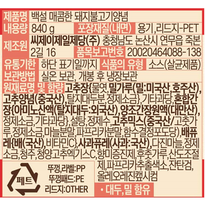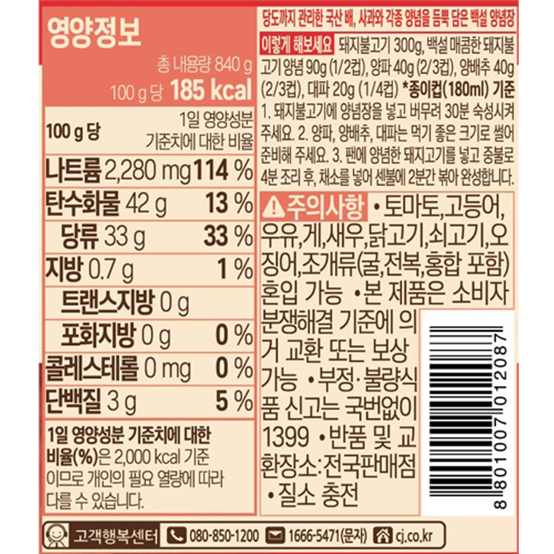 백설 돼지불고기양념(매콤_12입 840g/EA) 이미지