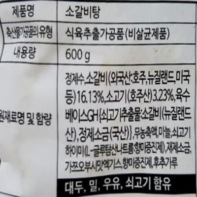 갈비탕(고향/소갈비탕/브라질산 600g)