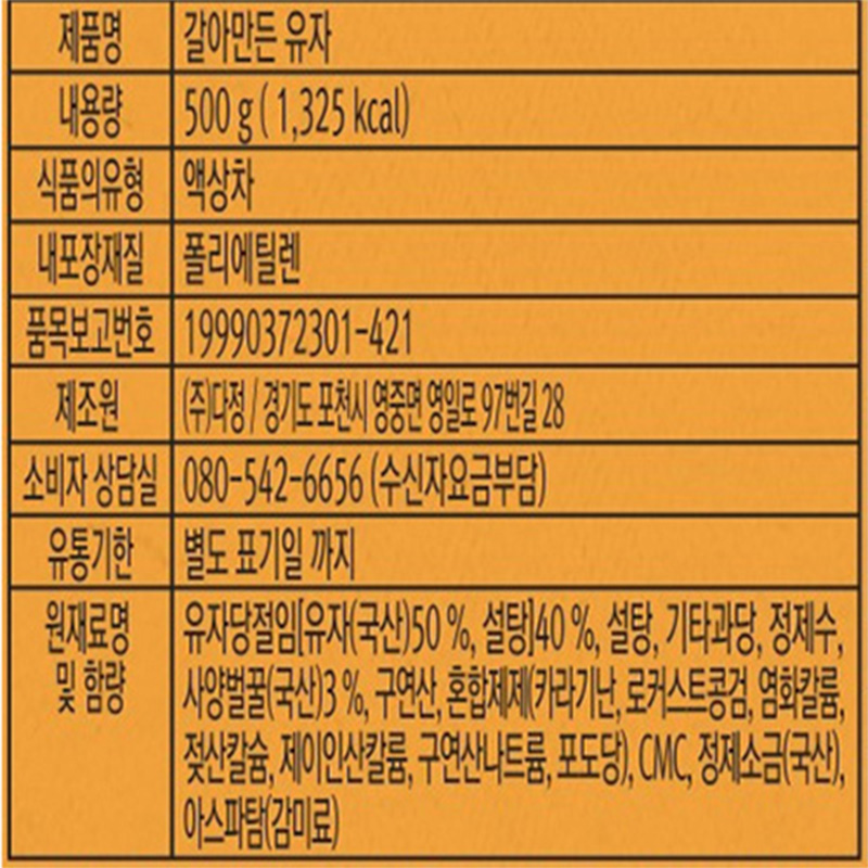 다미즐 갈아만든유자(500ml 500g/EA) 이미지