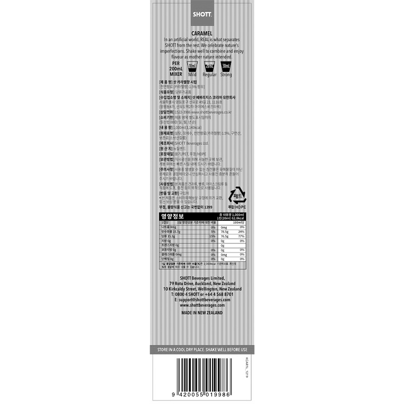 SHOTT 카라멜향 시럽(1L 1Kg/EA)