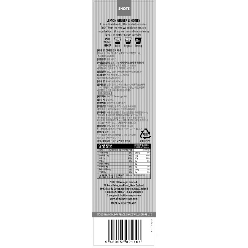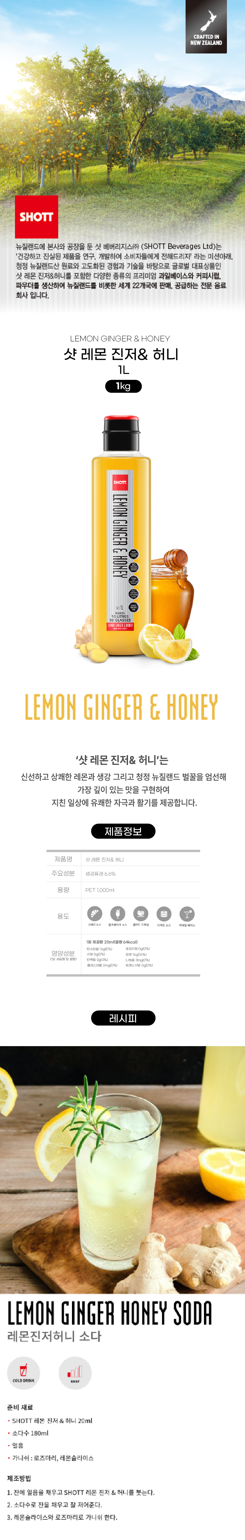 SHOTT 레몬진저&허니 시럽(1L 1Kg/EA)