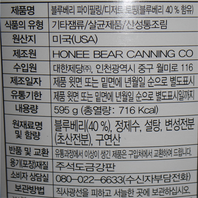 블루베리파이필링(호니베어/리치골드/595g* 이미지