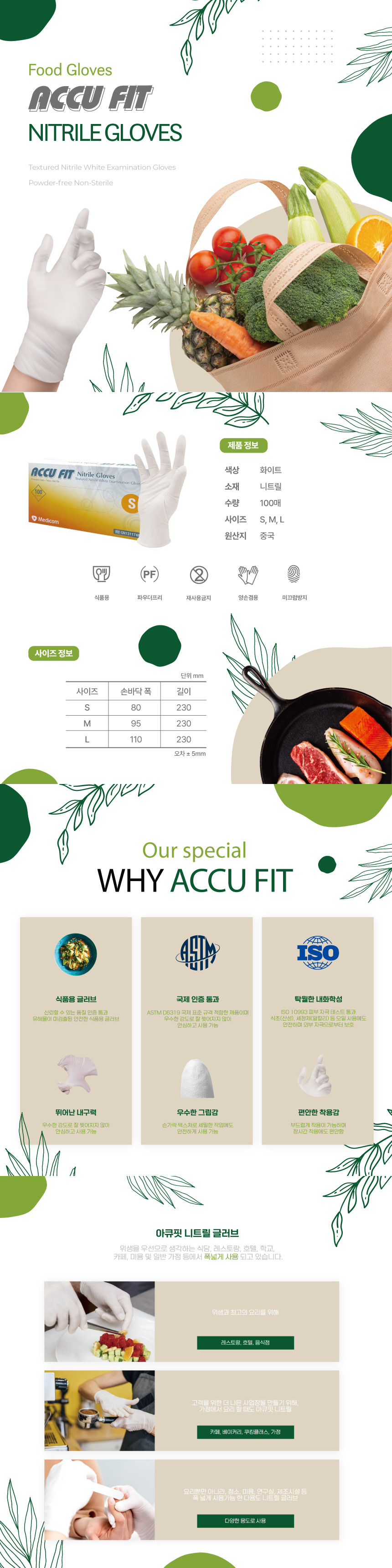 아큐핏 니트릴 식품용 장갑 화이트 100매 대형