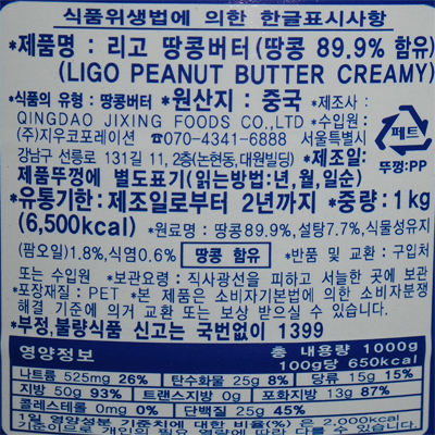땅콩쨈(리고/크리미/땅콩버터)1KG* 이미지