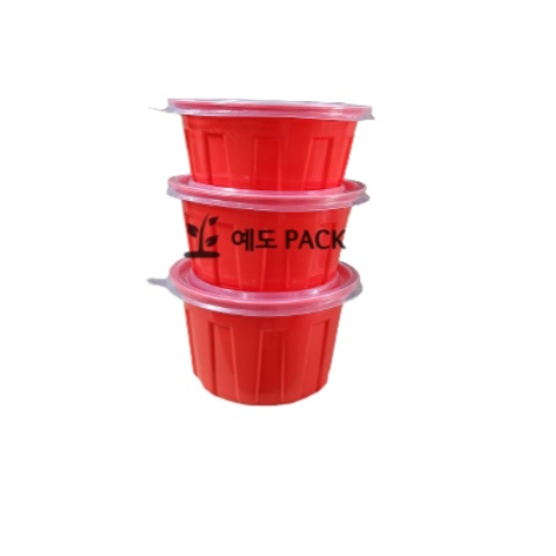 고강도 125파이 원형 반찬용기 죽용기 밥공기 빨강 대 500세트(몸통+뚜껑)