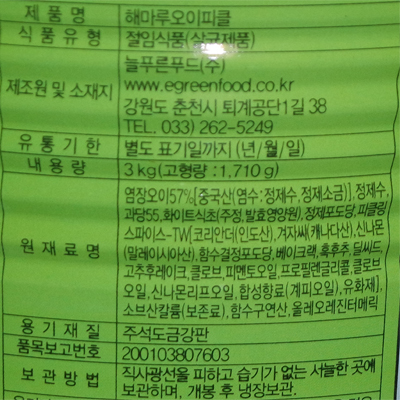 오이피클(늘푸른/슬라이스/해마루)3kg*