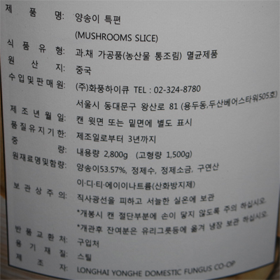 양송이캔(화풍/특편)2.8KG