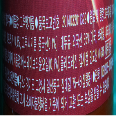 고추맛기름(진성)1.8L*10EA/유지류 이미지