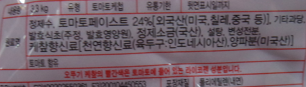 케찹(스파우트팩 식당용/오뚜기)3.3KG* 이미지